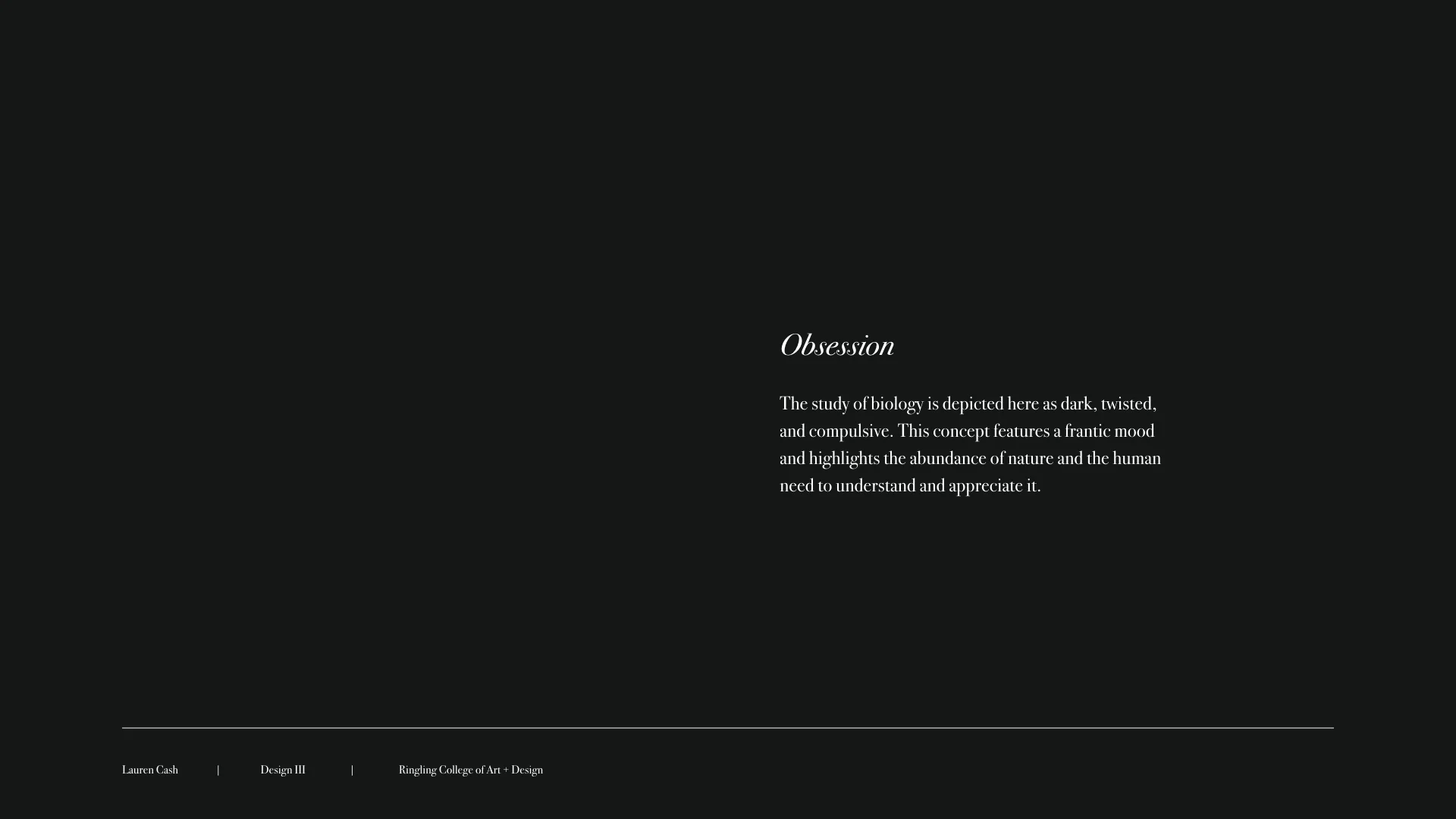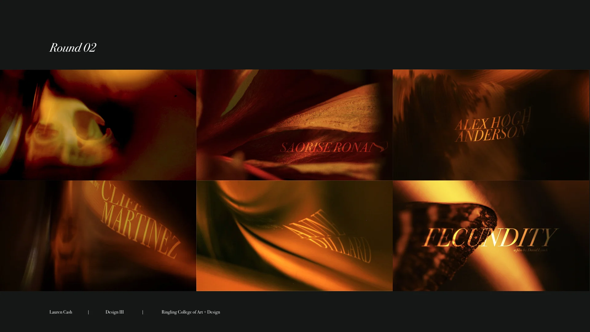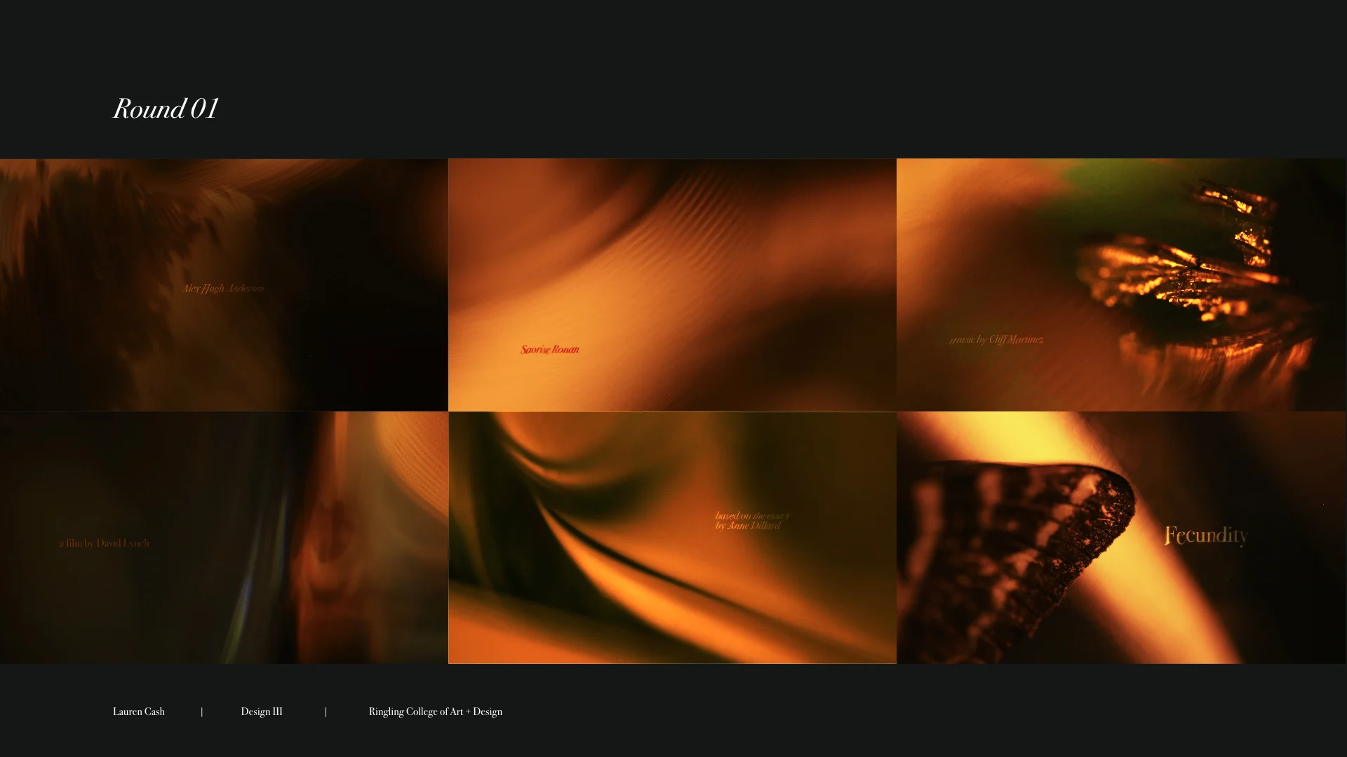 This project is a non-traditional approach to a title sequence, where there are no pre-determined storyboards, and we don’t know what the outcome will be at the start of the project. Students are asked to develop a title sequence for a text about time, nature, or technology. We begin with open-ended visual experiments that resonate with the readings, and continually refine the experiments to enhance their impact and steer the piece towards an intended mood or meaning.