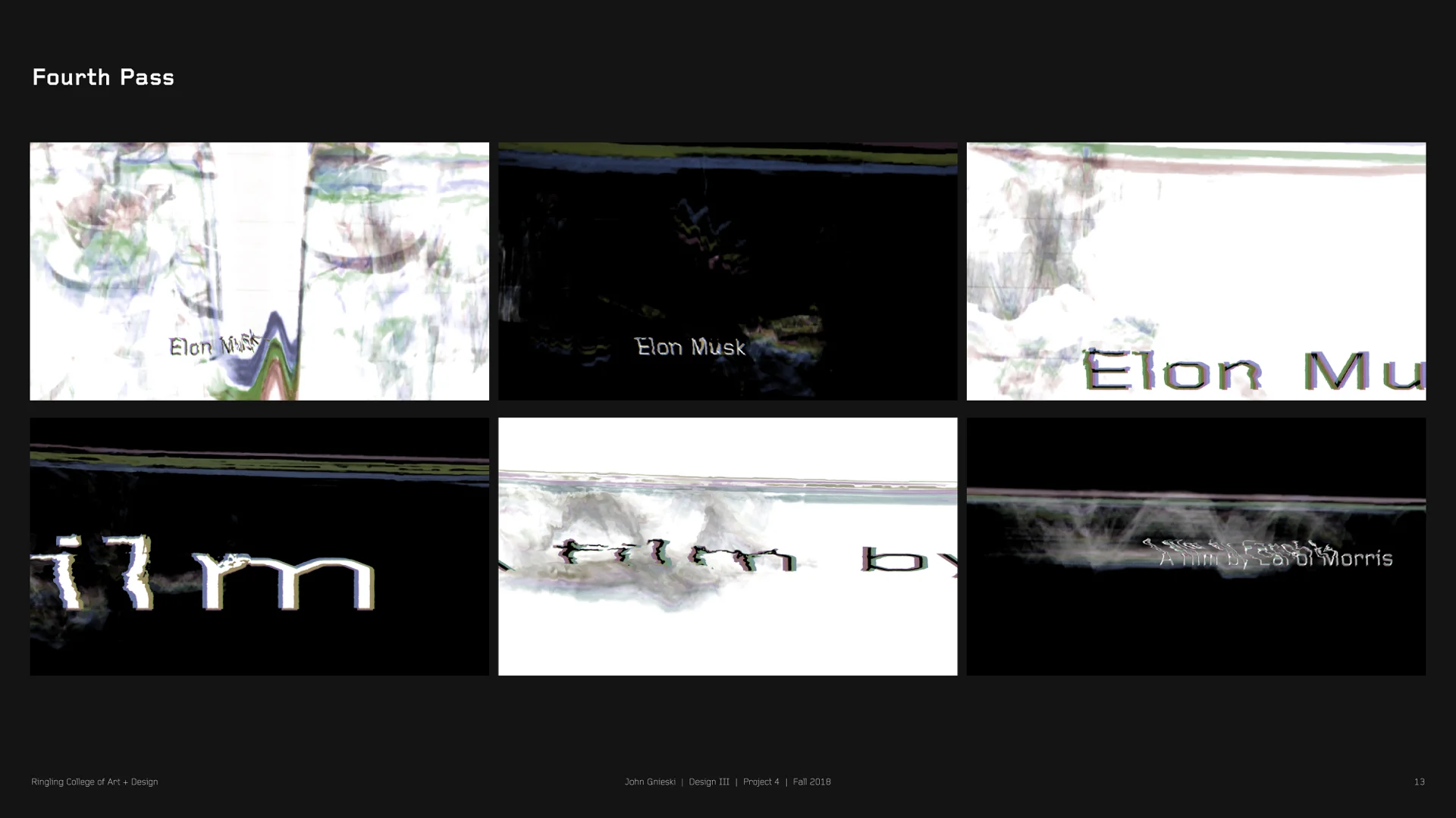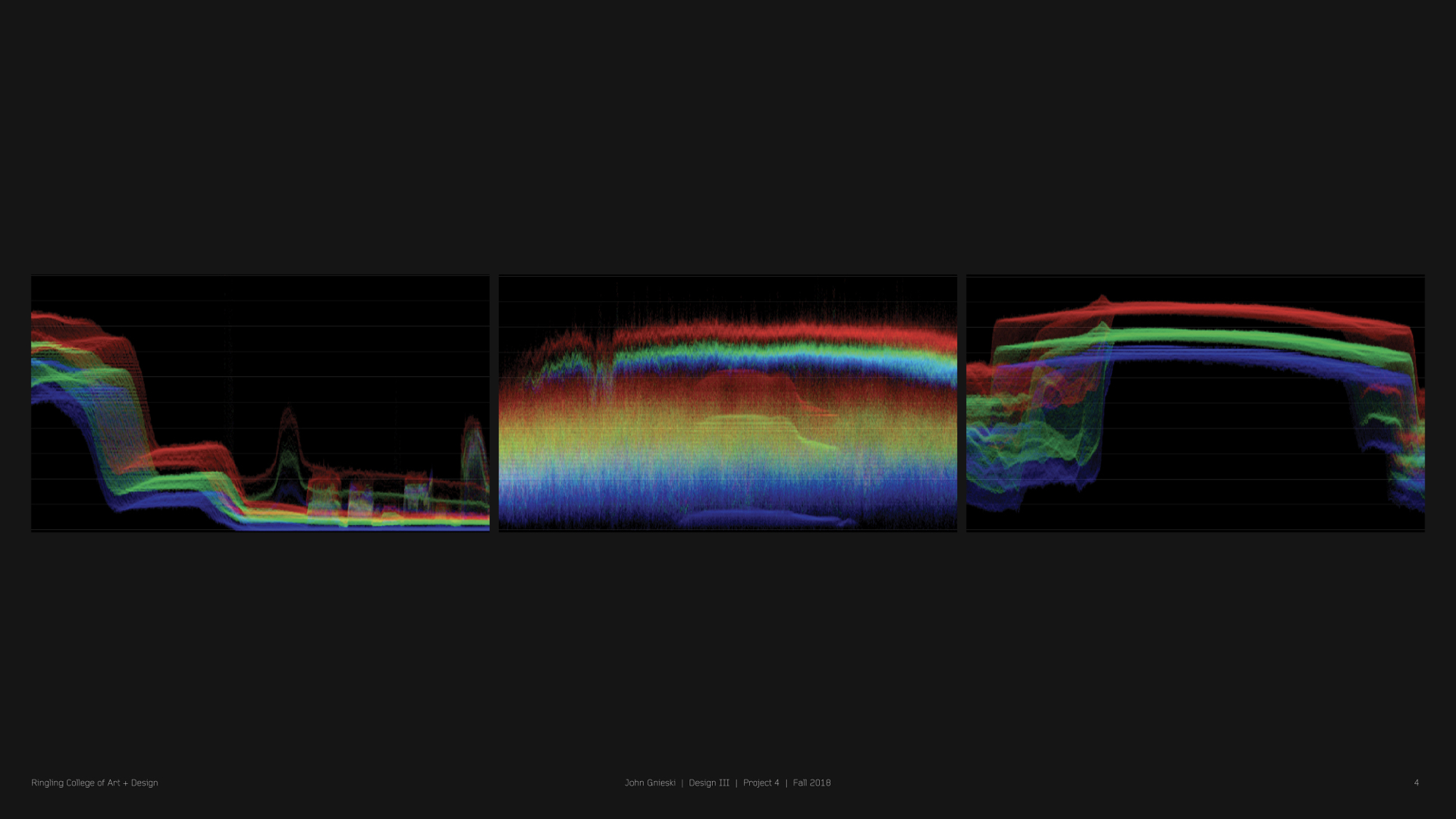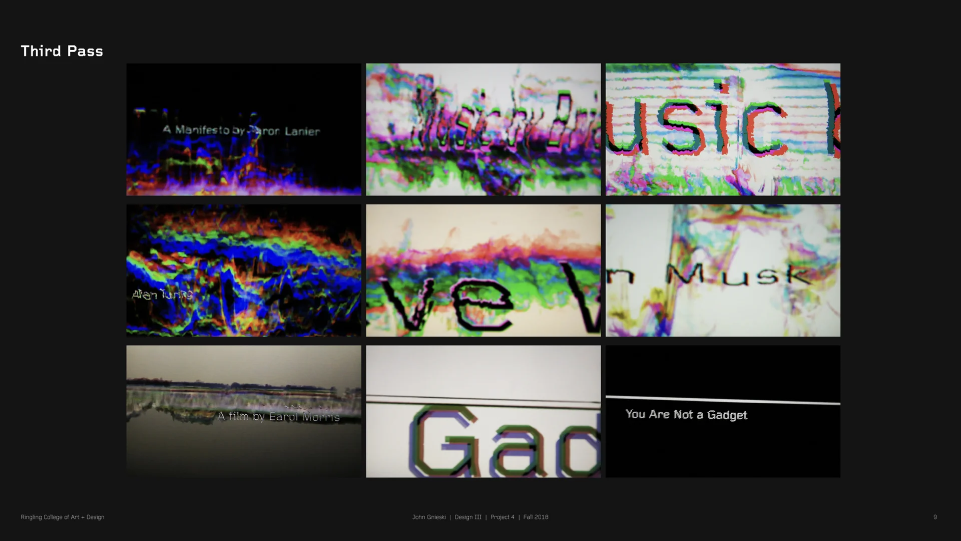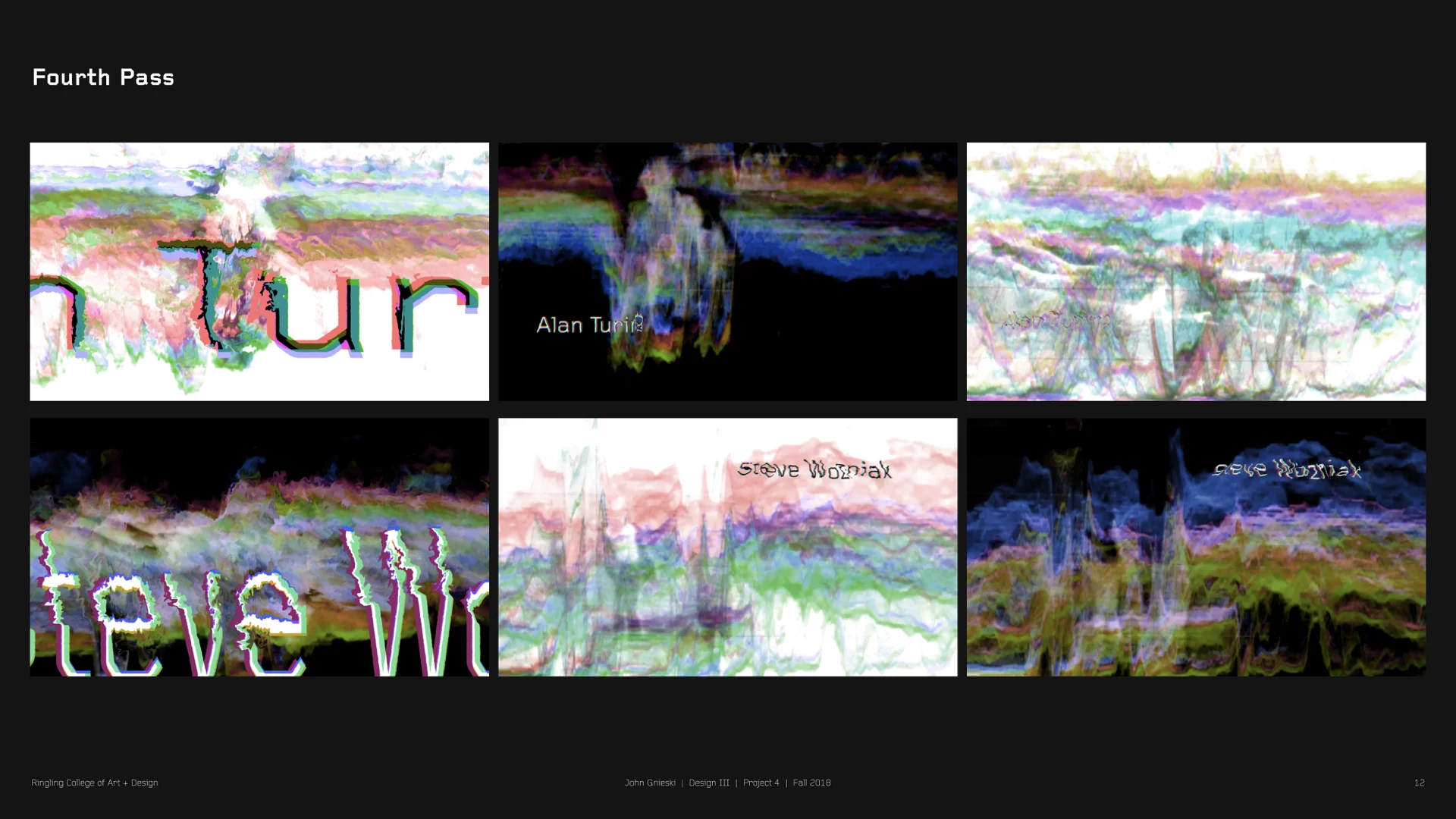 John explored the concept of computer vision and how the computer “sees” imagery. He experimented with RGB video scopes and other motion design tools in ways they were never intended to be used. He then took the output of these and further distorted the imagery.